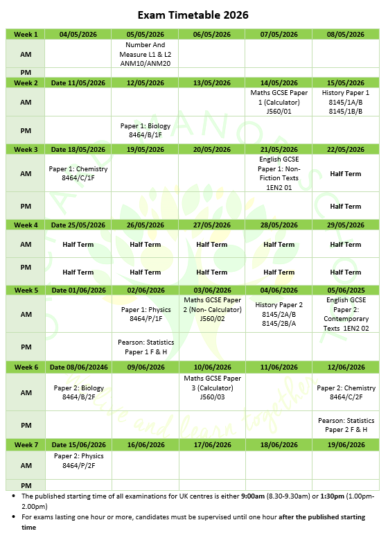 A printable version of this year's exam timetable is attached below.