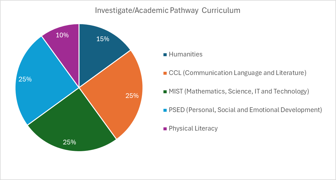 Overall, the Investigate Pathway aims to balance academic rigor with the development of life skills, preparing pupils for successful transitions into adulthood while supporting their unique needs.